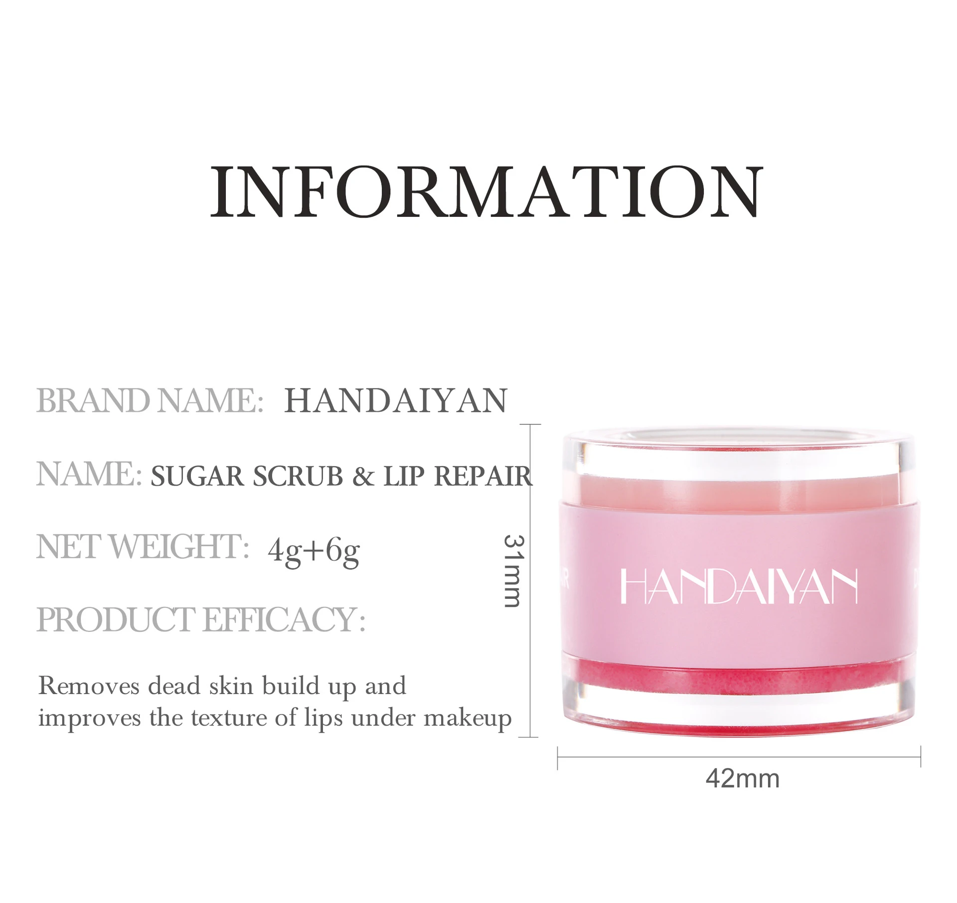 اسم المنتج: HANDAIYAN – مقشر الشفاه مرطب إصلاح الشفاه قناع السكر فرك 2 في 1